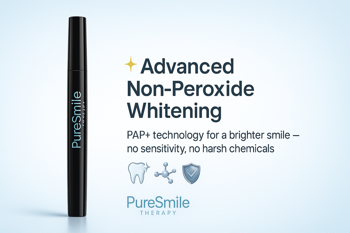 The PureSmileTherapy™ Whitening Pen uses an eco-friendly, non-peroxide formula to remove stains in just 1–2 minutes. Gentle on enamel, vegan, and proven to deliver a visibly brighter smile without irritation.